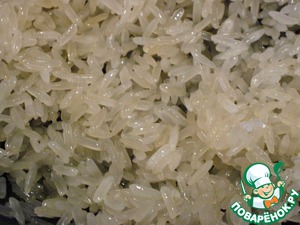 Рис, куриное мясо, обжаренный лук посолить, поперчить и перемешать, приправить паприкой. Добавить зелень, перемешать еще раз. -