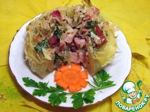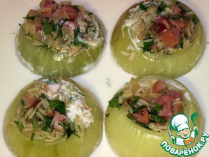 Рецепт «Лук фаршированный со сливочно-сырным соусом»: