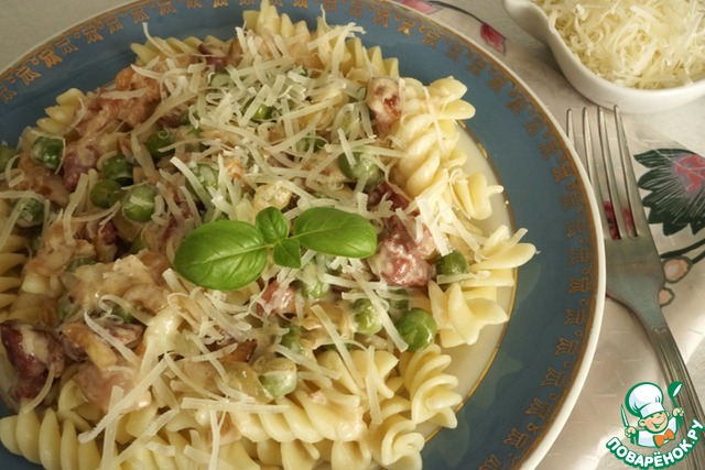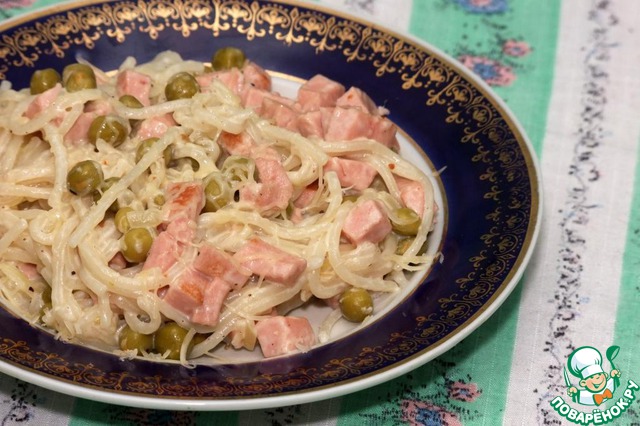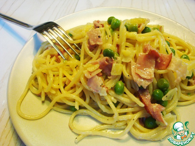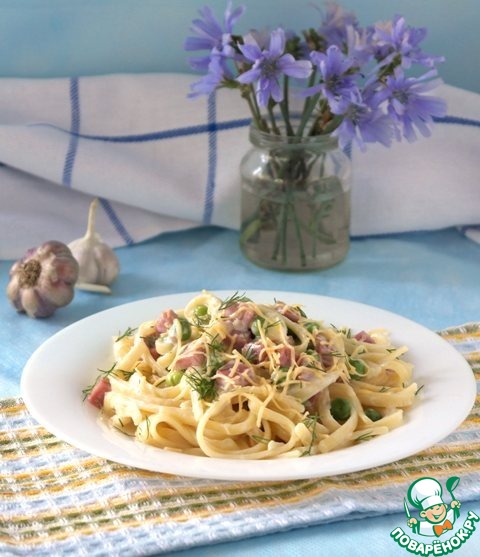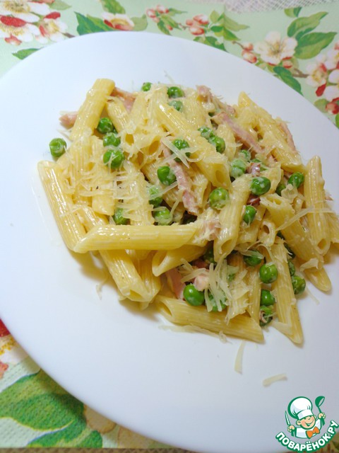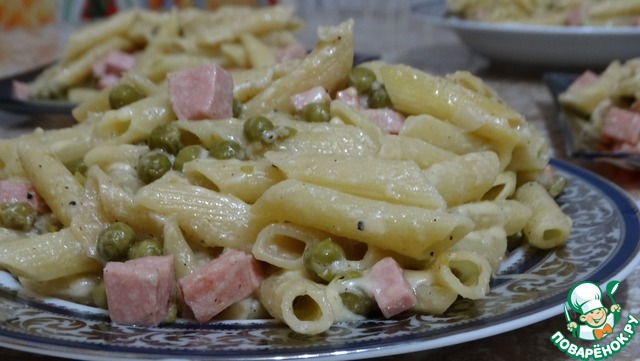 Рецепт «Паста с ветчиной и зеленым горошком»: