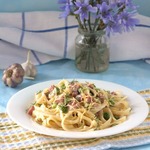 Вообще-то, оригинальное название этой пасты звучало как "Оливье по-итальянски&qu ot;. Автор, annamont, рассказывала в предисловии к рецепту, что вкус этой пасты очень напоминает вкус хорошо известного всем нам салата "Оливье". Кстати, в Италии "Оливье" называют "Русским салатом", стоит он 11 евро за кг и выглядит примерно так: "одинокие кубики вареного картофеля, моркови и иногда колбасы, почти затерявшиеся в майонезе". Может, пообедав «по-русски», итальянцы становятся еще бОльшими патриотами своей кухни?))) Теряюсь в догадках... Я Оливье готовлю раз в год на Новый год и такая ностальгия накатила после прочтения этого рецепта, что тут же пошла и приготовила эту пасту. Девушки, не поверите, действительно похоже на наш Оливье! Съели молниеносно, было мало.))) Итак, всем любителям пасты и оливье посвящается...
