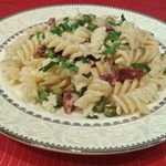 [+4]Делала из фарфале, с беконом и свежим,отварным горошком. Вполне хорошее и незаморочное блюдо.