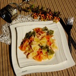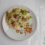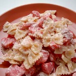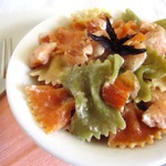 Farfalle con salmone affumicato. Несмотря на то, что бантики фарфалле выглядят кокетливо, очень по-женски, вкус у этой пасты весьма брутальный. Еще бы, ведь в составе - копченая рыба и... водка! Захмелеть от этого блюда не получится, но удовольствие гарантирую. Рецепт elladkin.