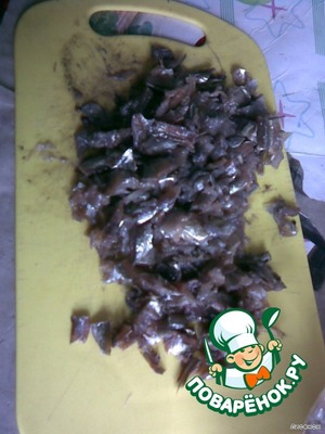 Мойву почистить и порезать мелко (это третий слой + сетка из майонеза).