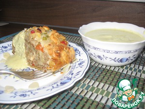Сверху обсыпать остаками миндаля, овощей и сыром. Выпекать в предварительно разонретой духовке до 200 градусов 45 минут.