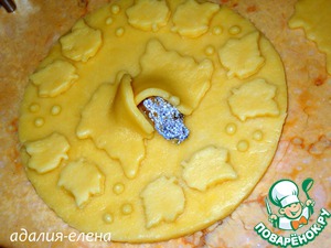 Из оставшегося теста вырезать крышку и элементы декора. Листики на крышку я клеила яйцом. Саму крышку выпекать отдельно до золотистого цвета.