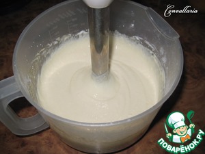 В блендере смешать творог, желтки, сметану, сахарную пудру, 2 ст. л. крахмала и ванилин. Взбить до однородной массы.