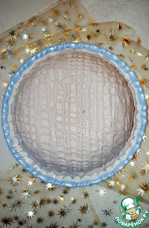 В середину формы поместить стакан донышком вниз и поставить в морозилку.