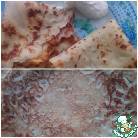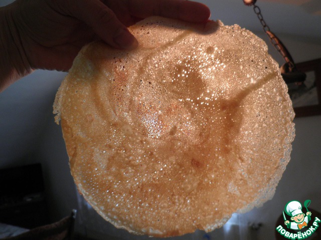 Даже если Вам покажется, что сильно жидкое тесто, не вздумайте добавлять муку, выложила фото показать, какие они получаются тоненькие и с дырочками.