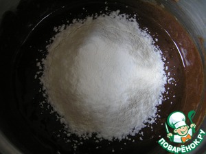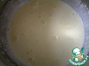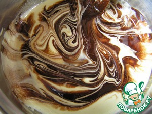 Шоколад растопить на водяной бане со сливочным маслом. Влить в яичную смесь, перемешать.