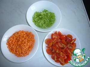 Мелко нарезаем морковь и сельдерей, помидоры - тонкими дольками.