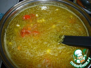 Через 10 минут пришел черед отправиться в суп и ломтикам помидорa.