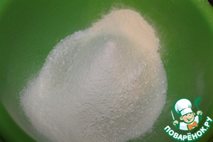 Перемешать муку, сахар и пекарский порошок.