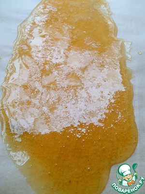 Готовим лимонную карамель. Выжимаем сок из 3 лимонов - примерно 100 мл. Варим карамель из лимонного сока и сахара. Я делаю это в любимой сковороде.