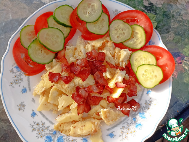 Рецепт «Яичница-болтунья с беконом на паровой бане»: