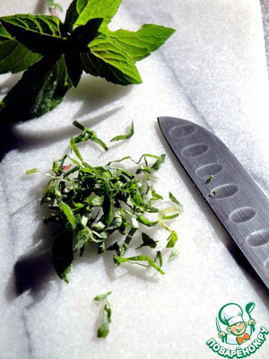 Мяту мелко порезать.