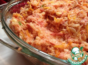 Смешиваем рис (перед этим отварить его), фарш, тыкву и наши остроты.