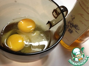 Яйца, соль, сахар, уксус, льняное масло мешаем миксером.