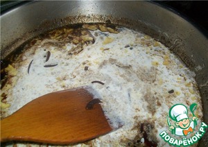 Добавить уксус и выпарить наполовину. После этого влить сливки и на маленьком огоньке при непрерывном помешивании дать соусу загустеть. Ни в коем случае не должно кипеть и даже слегка булькать. По времени это займет минут 5.