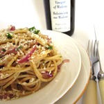 Spaghetti all`aceto balsamico Родиной этого блюда считается город Модена, который расположен в итальянском регионе Эмилия-Романья. Это одна из самых больших областей Италии, которая славится известным на весь мир сыром пармезан, пармской ветчиной и, конечно, знаменитым бальзамическим уксусом. Рецептов приготовления этого блюда существует великое множество, и у каждой хозяйки он будет свой, но неизменным остаются три главных составляющих – качественная паста, оливковое масло первого отжима и традиционный бальзамический уксус из Модены.