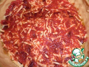 Сыр смазать домашним кетчупом, за неимением можно воспользоваться магазинным.