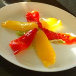 Болгарский перец режем полосками и выкладываем на Айсберг.