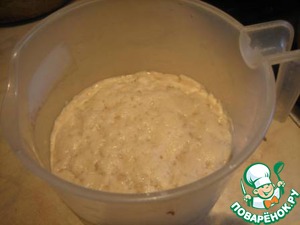 Дрожжи развести в теплой воде, добавить сахар и 1-2 ч. л. муки, отставить на 10-15 минут, пока не начнут пениться.