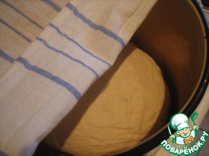 Смазать кастрюлю растительным маслом, положить в нее тесто, накрыть кастрюлю, поставить в теплое место для подъема на 2-3 часа, через час обмять.