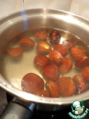Опустить каштаны в кипящую воду и варить примерно 20 -25 минут.