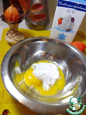 Для кофейного крема: желтки растереть с сахарной пудрой.