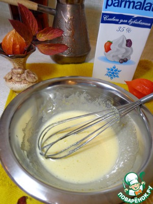 Добавить сливки, кофе, коньяк или ром (по желанию).