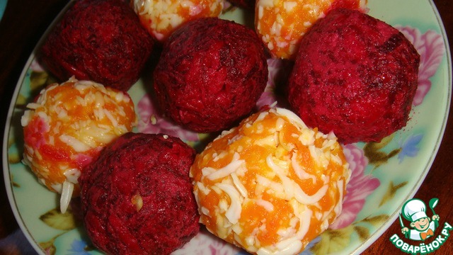 - Сыр голландский (100 гр для морковных шариков + 100 для свекольных шариков) — 200 г