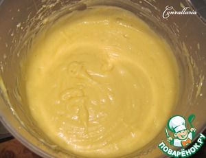 Для крема №1 (заварного): желтки (7 шт.) взбить с сахаром (120 гр.), добавить муку (3 ст. л.), ванилин.