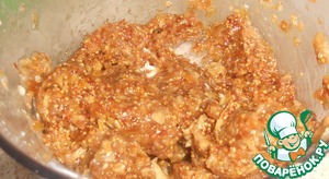 Инжир порезать на кубики и отправить в блендер. Добавить пару ст. л. воды и снова все вместе перекрутить. Тесто переложить в тарелку и добавить мед. *** Мед можно и не добавлять, а вместо него положить в тесто больше инжира. Перемешать.