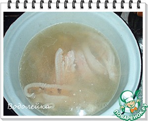 Заливаем остывшим бульоном.