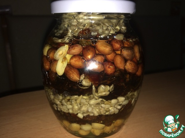 Рецепт «Орехи и сухофрукты в меду «Презент 2»»: