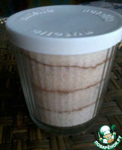 На 100г. сахара 1 ст. л. корицы, половину небольшого мускатного ореха, 5 стручков зелёного кардамона или 1 чёрного. Мускат с кардамоном измельчить в ступке. Всё перемешать, хранить в герметичной банке. Такой сахар отлично подойдёт на посыпку сладкой выпечки, для добавления в компот, в запекаемые фрукты, в молочные коктейли, глинтвейн.