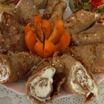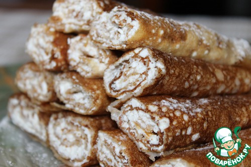 На готовый блинчик накладываем начинку и сворачиваем в трубочку.
