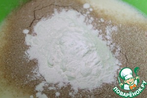 Гречневую муку я сделала сама, перемолов гречневую крупу. Добавляем муку и крахмал, перемешиваем.
