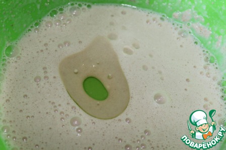 Добавляем растительное масло, перемешиваем. Тесто должно быть, как жидкая сметана.