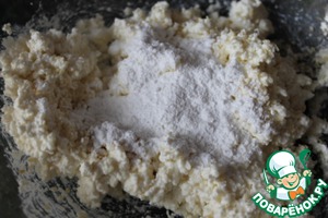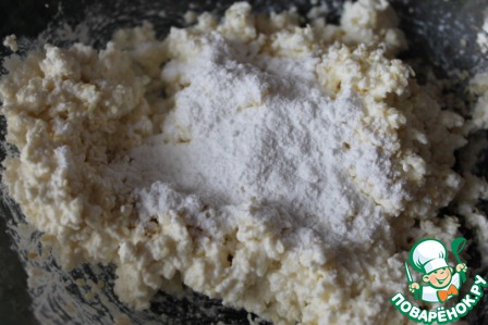 Смешиваем рикотту с сахарной пудрой и кунжутом.