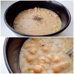 Достаем часть сваренного гороха (я брала примерно 1/3 от всего количества, вы можете взять половину. Смотрите сами, какая консистенция супа в вашей семье более любима) и при помощи блендера или толкушки для картофеля превратить в пюре.