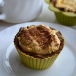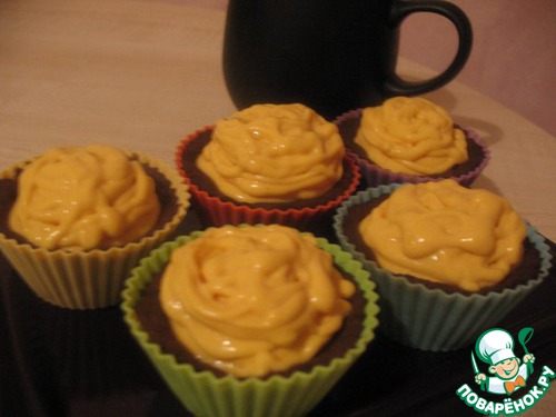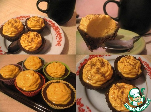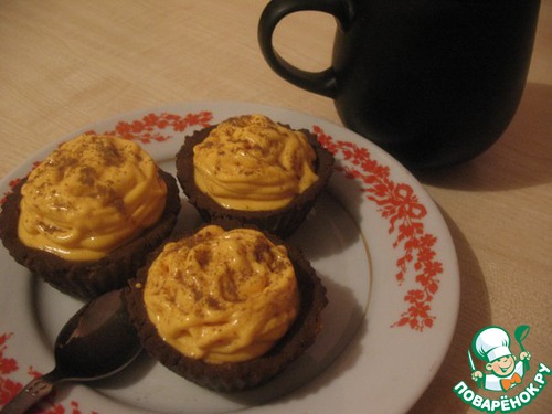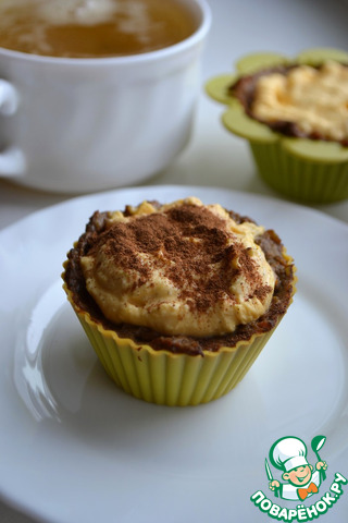 Я поделила тесто на 5 равных частей и распределила их аккуратненько в формочках силиконовых для выпечки кексов, плотно прижимая к краям и делая углубление посередине для крема (совет - смочите ручки холодненькой водичкой. Поставила в холодильник и приступила к приготовлению крема.