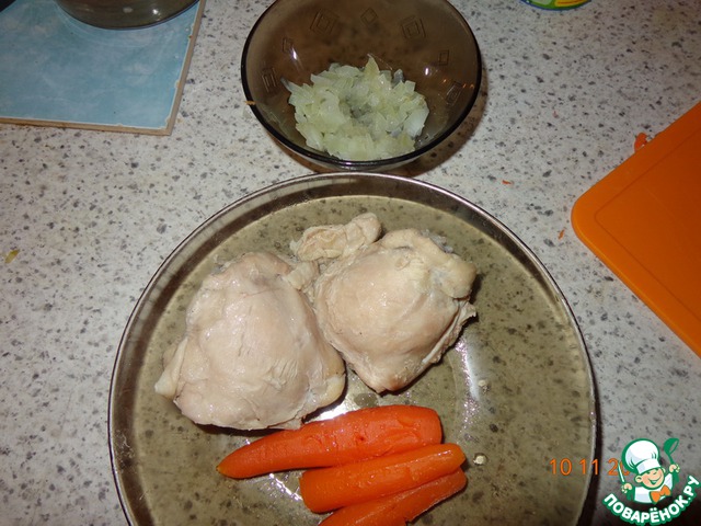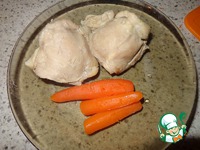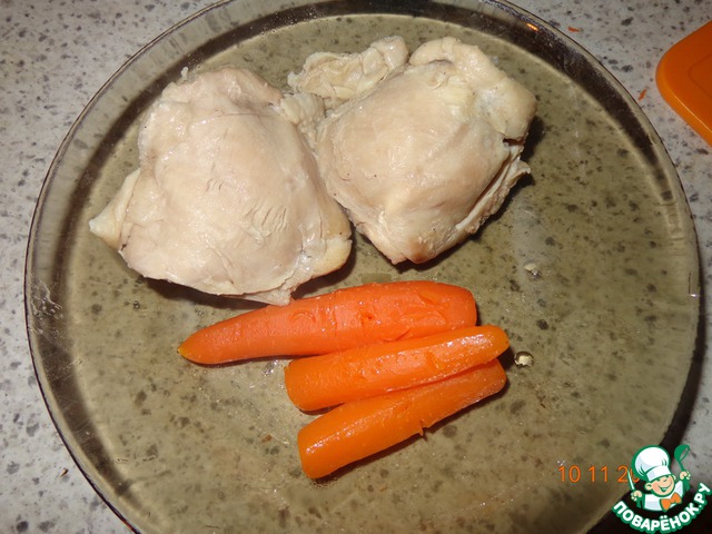 Отвариваем курицу (грудки, ноги, бедра и т. д.), я добавила морковь в бульон, для вкуса и прозрачности, но в итоге и морковь очень пригодилась, изначально варился просто борщ...