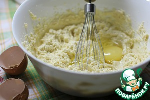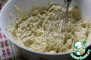 Масло взбить с сахаром до посветления массы и до чуть увеличения в объёме.