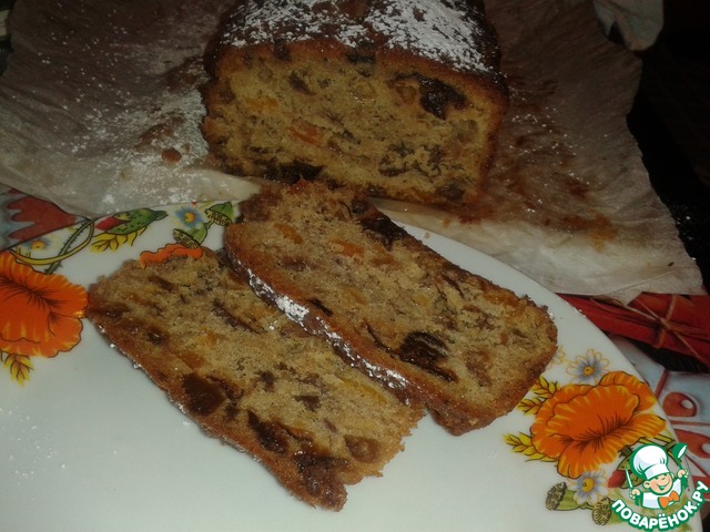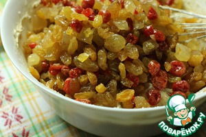 Далее было так: испекла кекс, купила партию сухофруктов, залила в этом году, через год их в дело и по кругу! Сухофруктная составляющая как правило разная, но в основном: два вида изюма- темный и светлый, вяленая вишня или клюква, кубики цукатов. Стоят себе в коньяке или наливке целый год!