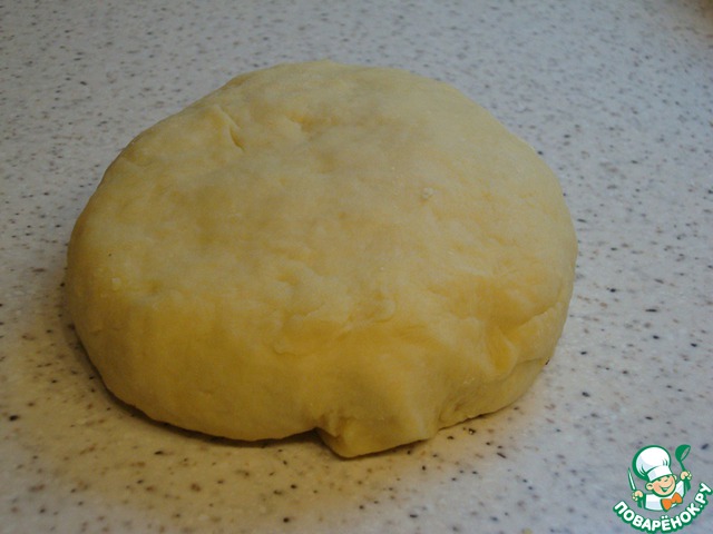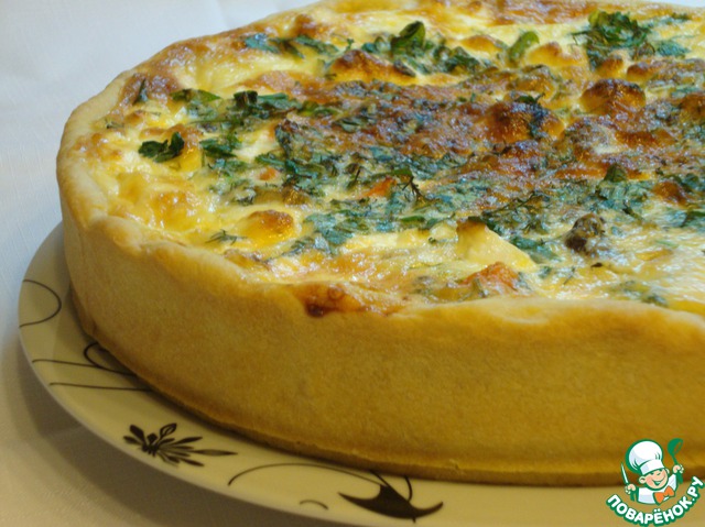 Тесто выложить в форму для выпечки, сформировать бортики и поставить в духовку, нагретую до 200 гр., минут на 10 для того, чтобы подсушить корж.