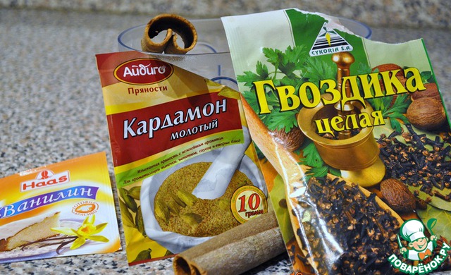 - Корица (в темное тесто или половинка палочки перемолотой в мельнице) — 1.5 ч. л.