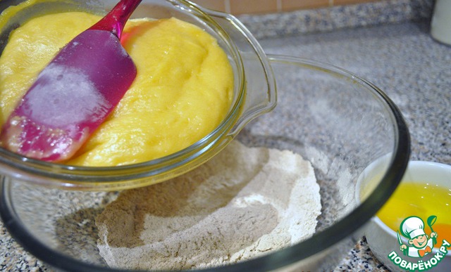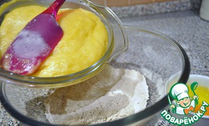 Смешиваю сухие составляющие, яйца и масляно-сахарную смесь.