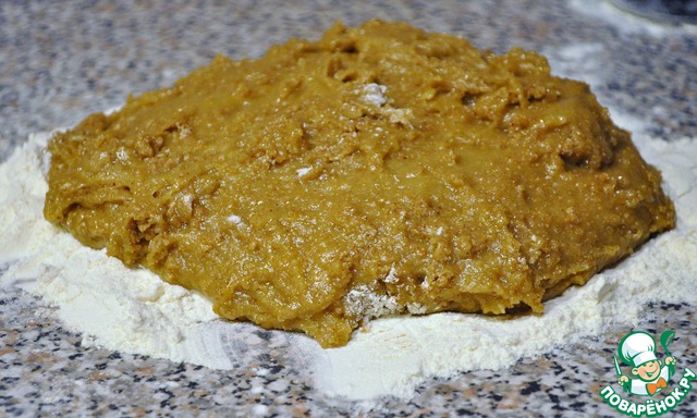 Добавляю белую муку, тут надо больше ориентироваться на свои ощущения, чем на точное количество муки, т. к. мука всегда разная, и то её больше надо, то меньше, тесто должно быть не жесткое и не липнуть к рукам.