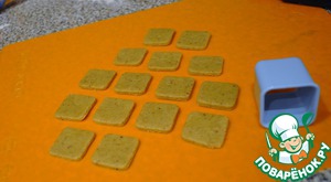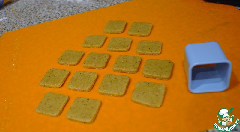 Вырезаю квадратики для цоколя и елки с помощью формочек для печенья.